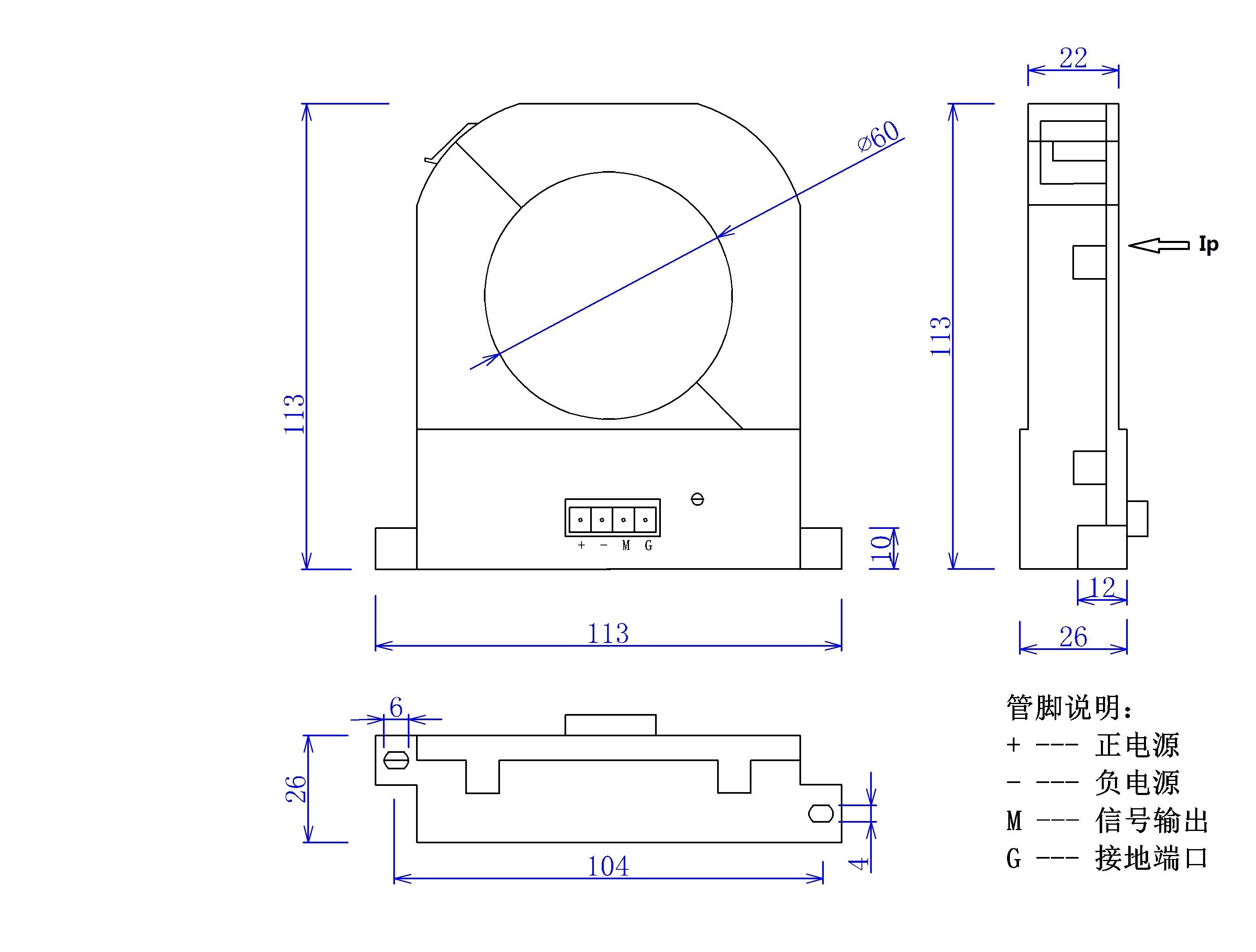 | IP | 原边电流测量范围 | 0~±20 | 0~±30 | 0~±70 | 0~±120 | 0~±220 | 0~±600 | 0±1200 | mA |